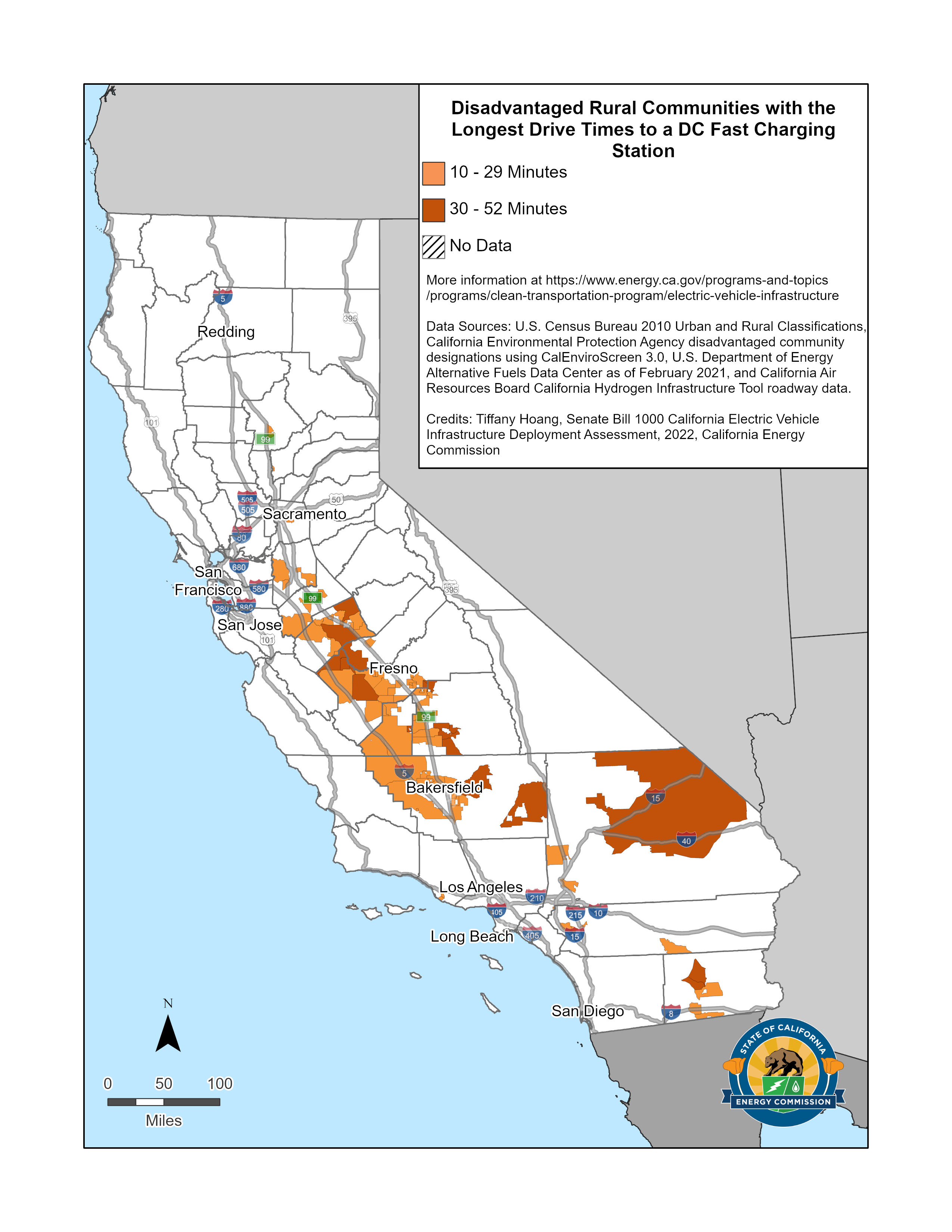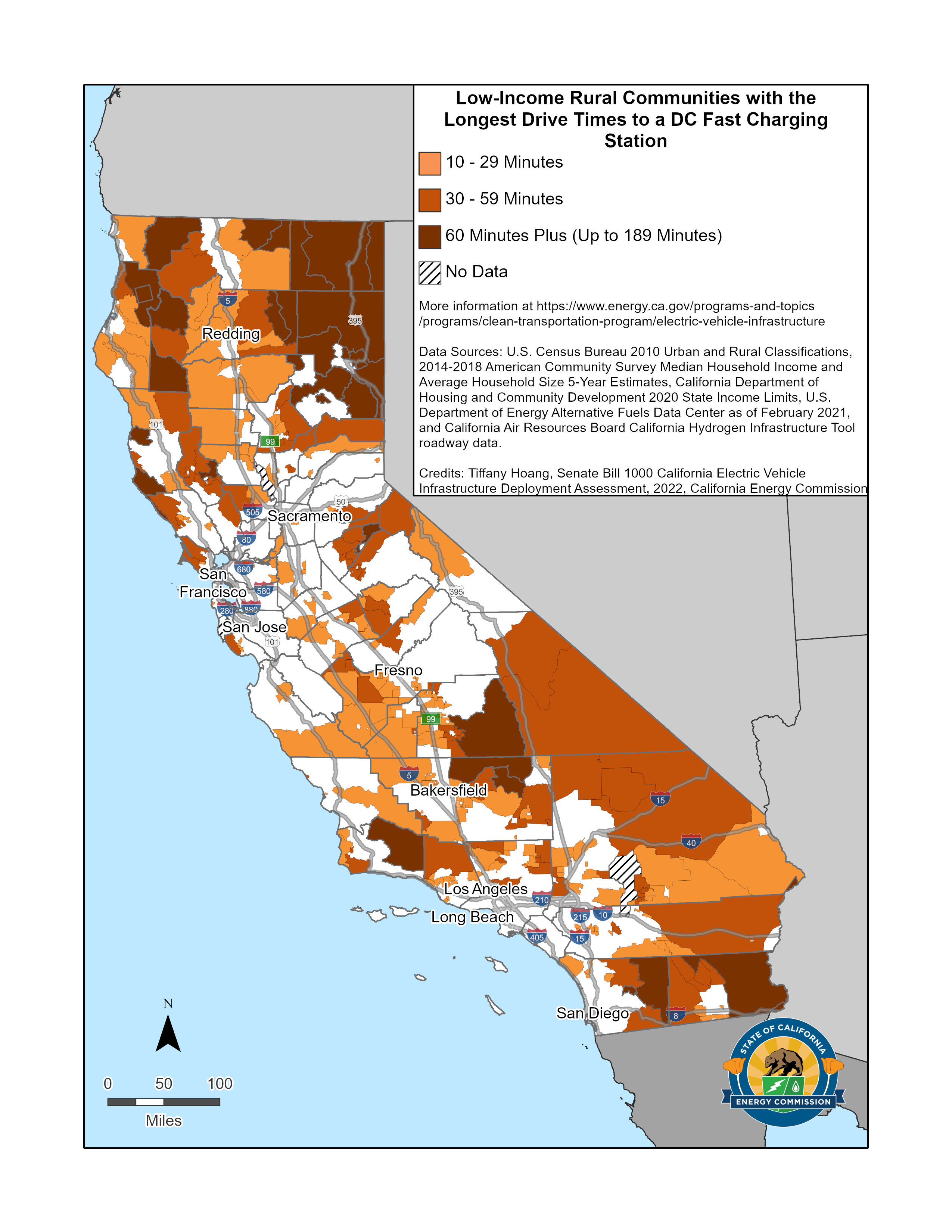 SB 1000 Map of Low-income Rural Communities with the Longest Drive Times to a DC Fast Charging Station