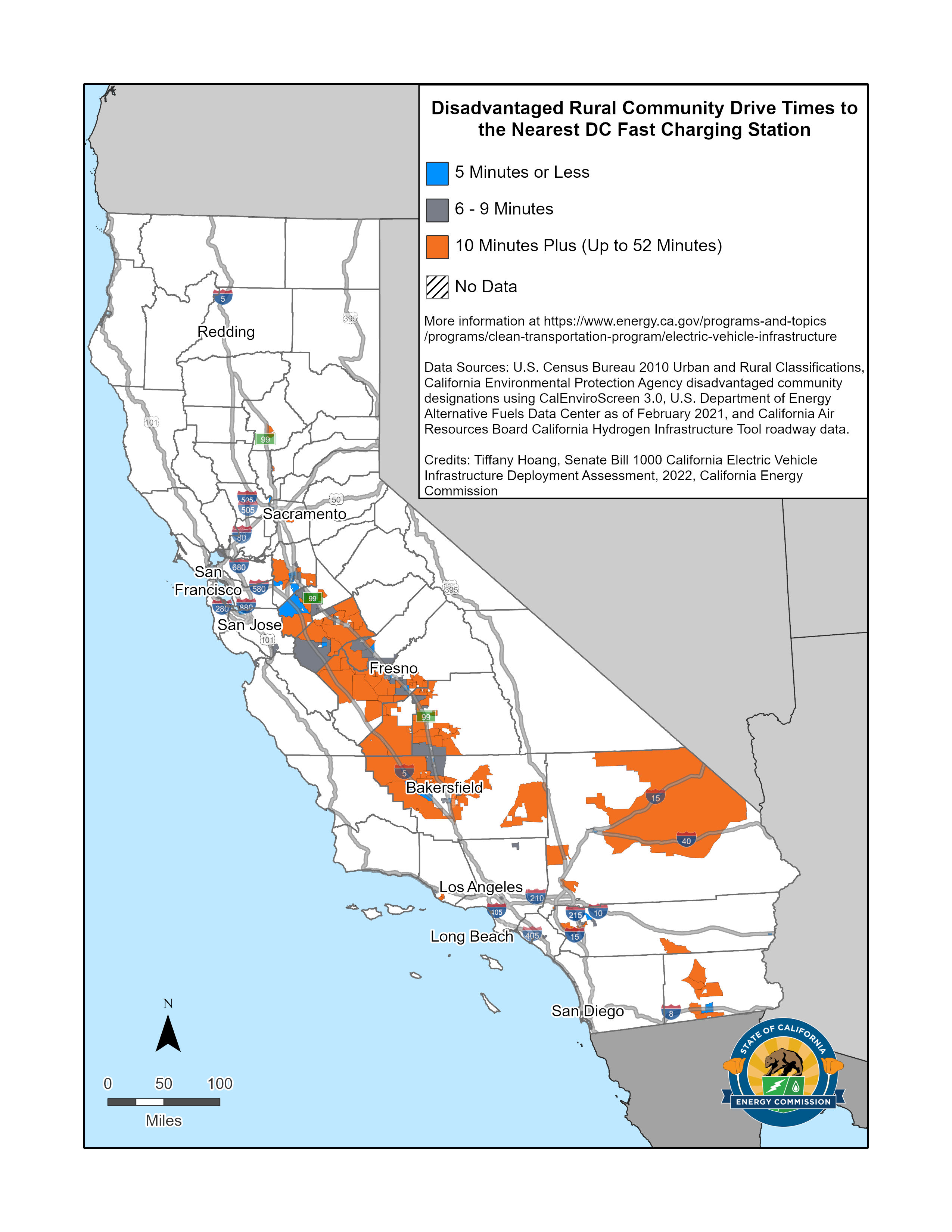 2022 Senate Bill 1000 CA Electric Vehicle Infrastructure Deployment Assessment Drive Times to Direct Current Fast Chargers