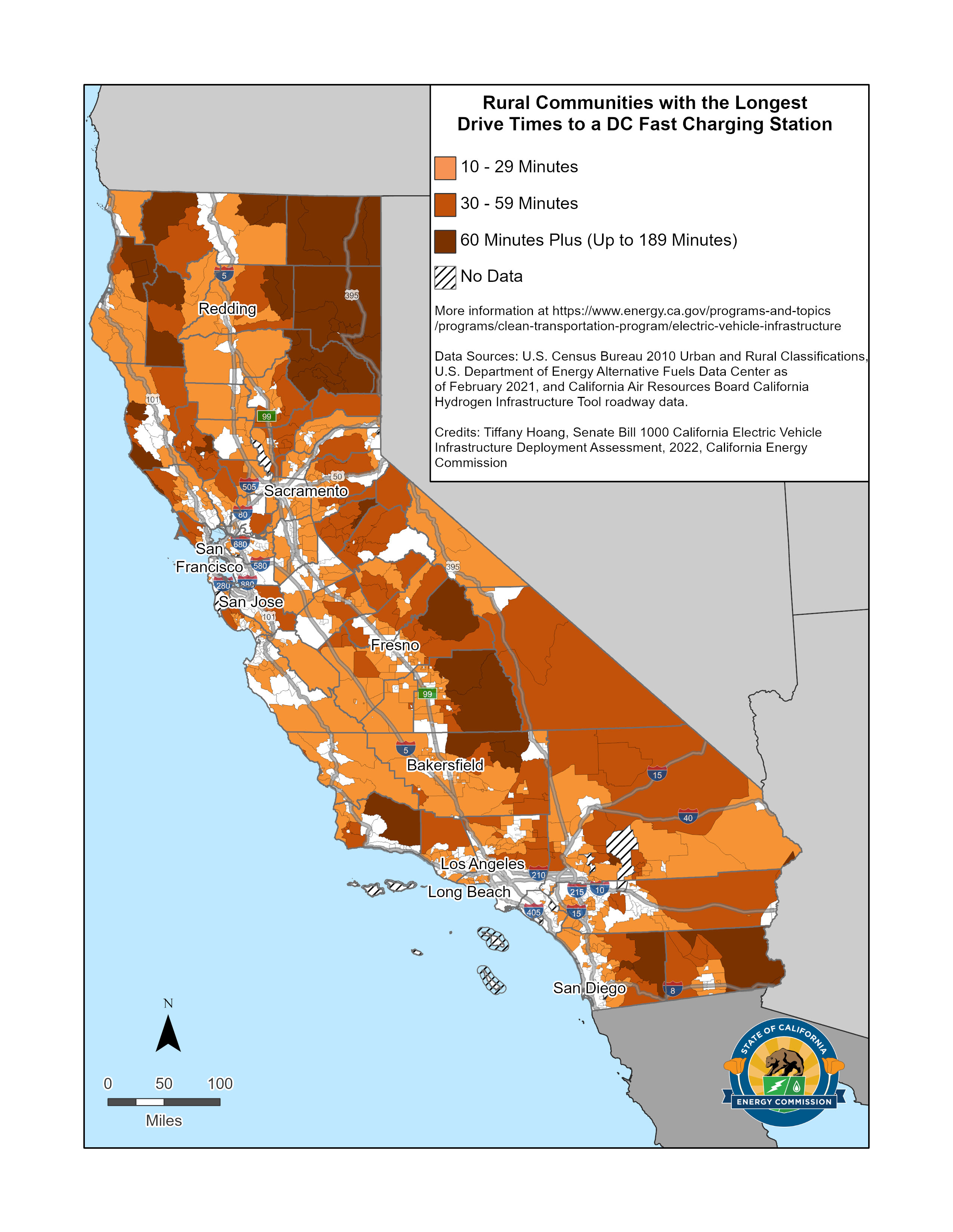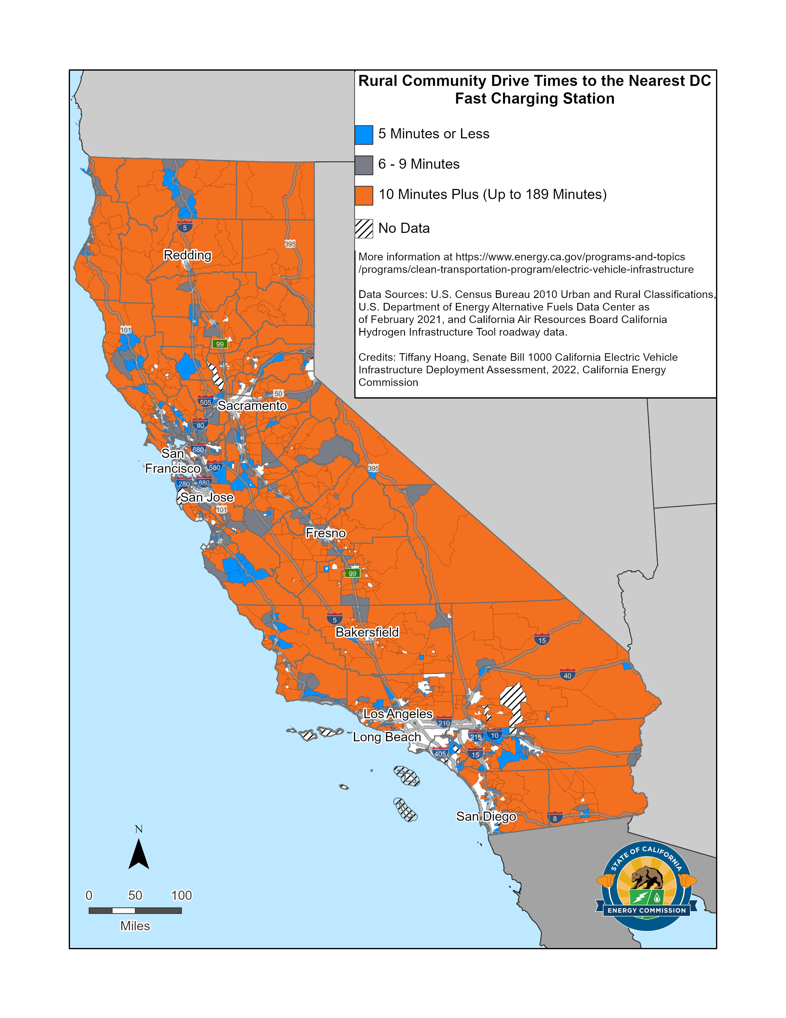 SB 1000 Map of Rural Community Drive Times to the Nearest DC Fast Charging Station